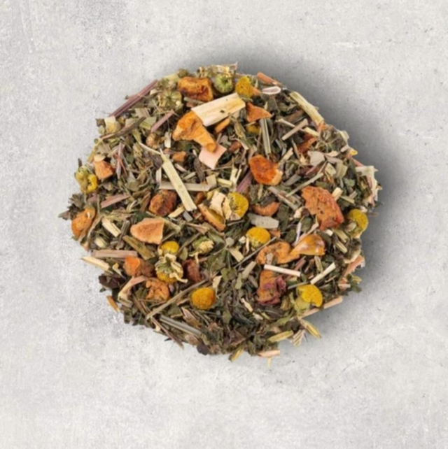 Infusion de mélange de plantes et fruits. Ingrédients: Pomme, ortie, citronnelle, fenouil, camomille, feuilles de mûre. Origine Allemagne Conditionnée à la main en Valais Suisse Pour les amateurs d'infusion douce à boire tout au long de la journée chaud ou froid. Pour une tasse placez 4g du mélange avec 200ml d'eau à 100 degrés. Laissez infuser 7 à 10 minutes. Pour une théière d'un litre placez 12 à 15g entre 7 et 10 minutes à 100 degrés. Contient du fenouil Conserver dans un endroit sec à l'abri de la lumière. Déconseillé aux femmes enceintes et allaitantes et aux enfants de moins de 3 ans.