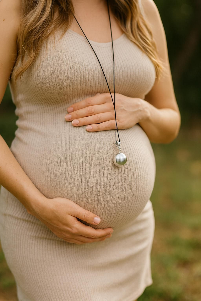 Ce bola de grossesse délicatement façonné en argent véritable, est une invitation à vivre ta maternité comme un rituel doux et sacré. Sa forme sphérique, pure et lumineuse, repose au creux du ventre, là où chaque instant compte, là où le lien avec ton bébé se tisse dans le silence et la tendresse.